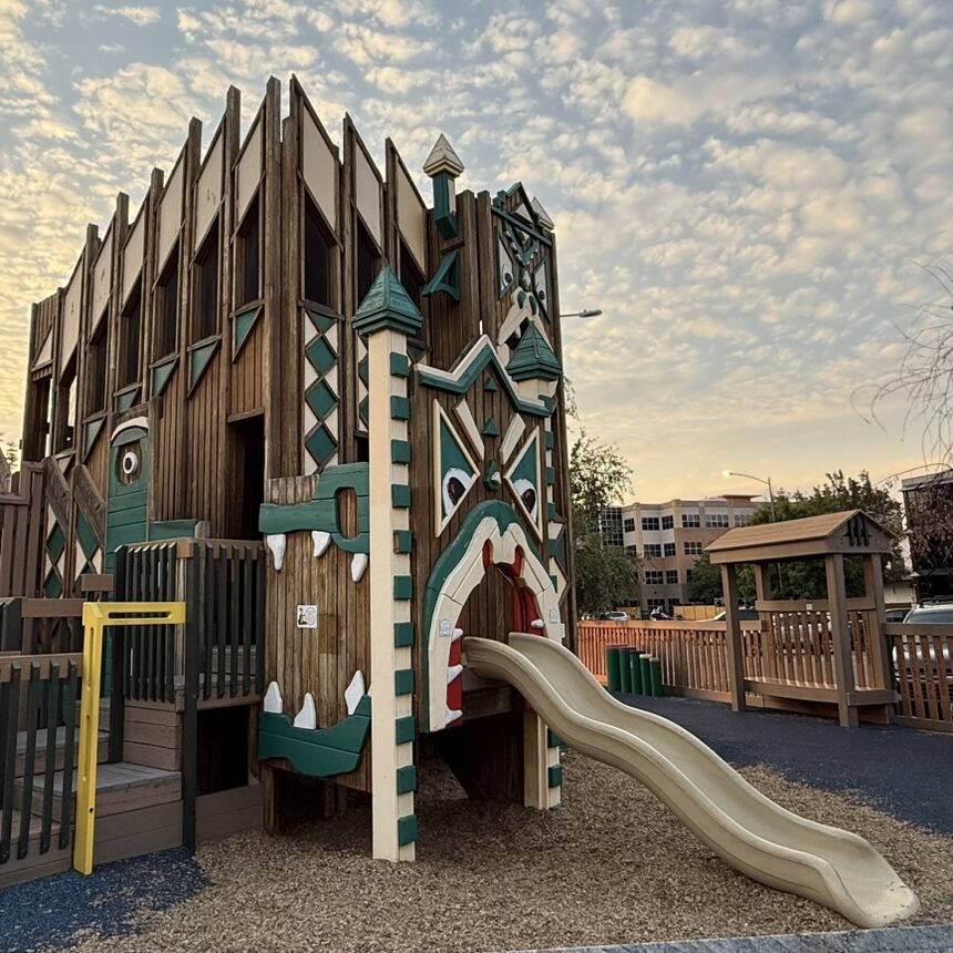 Dragon Hollow is a one-of-a-kind playground in the heart of Missoula, right next to A Carousel for Missoula. Built in 2001 through the combined efforts of local children, artists, and thousands of volunteers, it quickly became a beloved community treasure. In 2019, Dragon Hollow was refurbished and expanded to create an all-abilities play space, where children of every age and ability can play side-by-side.
